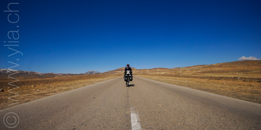 Powerful and freezing… Too glad to have crossed the Kurdish mountain passes, we thought we were over the bitter cold. But, we entered a mountainous land and the road we chose unexpectedly never descended under a thousand meters elevation. From the warm weather we had hoped, we only found snow. And still now 15 mars, it is still snowing. As we cycled on the straight road that took us east, we often found ourselves over 2’000 meter, and sometimes in snowstorms. Moreover a strong wind never stopped blowing and unfortunately it was facing us more than our share. With this weather, the temperature went down far below zero and we had our coldest night by -10°C, preventing us from resting as our sleeping bag where not warm enough. Our lavender also suffered from the cold and it probably definitively froze that night.
