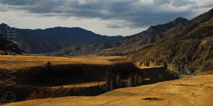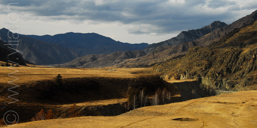 This morning, the sun, rising over the horizon, illuminates your alpine mountains with a bright pink. The last stars are still glowing and looking at the clear morning sky, your breath will be biting. The limit of your last taiga forests, that comes into sight on the slopes of the mountains, is a reminder that the plateau is already at 1’700 m high, one of your high-altitude steppes.
