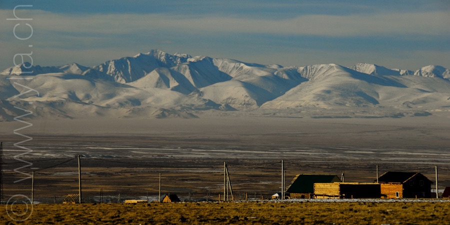The daylight decreasing quickly at this time of the year, the sunrays are just a tender kiss on your frozen ground. The negative temperatures reveal a crystalline universe. The glacial wind blows the smoke of each of the chimney of Kuray away. And the colourful flats of the small wooden houses give some bright colours in your aquarelle world.