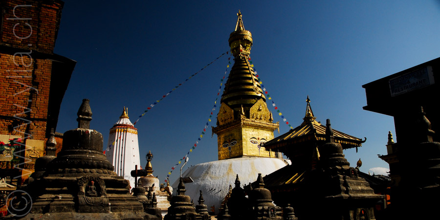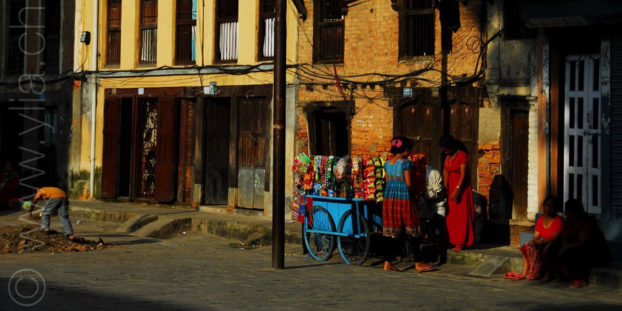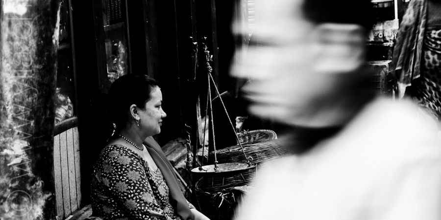 The prayer flags, the stupa, the loving and compassionate Buddha, the Tibetan medicine and the vibration of the singing and healing bowls, the mantras echoing in the Gompa, the praying wheel, the powerful scent of the incense, the spiritual energy of Bodhnath Stupa. Imbricated in the same places, it is the Hinduism with its bright red that create a strong energy within the sacred. It is Pahupatina, the spiritual center of Hinduism that radiate its powerful link with Shiva, its golden bull, its secular traditions of cremation where the ashes are then delivered to the river that lead them to the Ganges, the way to the afterlife. It is the cycle of reincarnations and the social play of casts, it is the 30 millions of Gods to pray. It is the creation of Brama, the preservation of Vinshnu and the destruction of Shiva. It is the blood sacrifices to Kali. It is the pujas, the morning offerings, the ceremonies and the festivals happening during fall. It is the red tika of the third eye and the Ayurvedic medicine. It is the temples spread in each small alley of the city. Finally the sacred is found in the spicy smell of the traditional milk tea and the Dal Baht, the main dish made of rice and lentils. The sacred is the swirling valse of the colors of the saris and the odors spreading in all places, it is the contrast between the purity of the high acme in the vastness of these landscapes and the perpetual movements in the samll alleys of shadows.