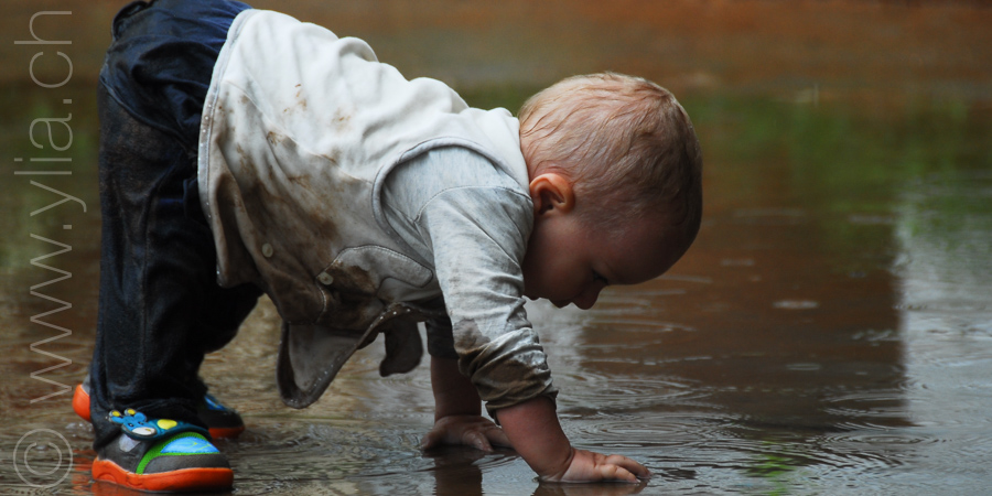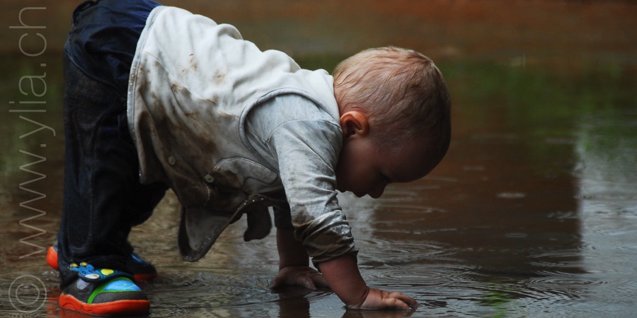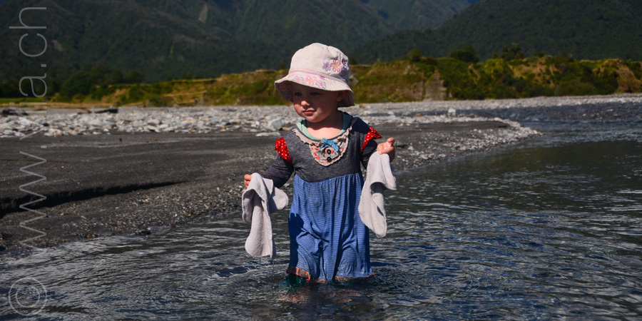 In New Zealand, in the valley created by the sapphire blue Wakatipu Lake, the songs of the elves echo in the summits. We enter a sanctuary of high snowy peaks, however their faces disappear behind a veil of clouds getting darker and darker. From the magic of a breathtaking panorama, we find ourselves sheltered under the wing of a pine tree, while beads of water fall on the earth. Nayla is a ray of sunshine in the icy mist. She plays and laughs in the puddles, master of perfect innocence that knows how to create games for every moment.