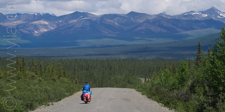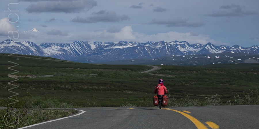 We didn't know which way to go, of course, we were going to meet Jessie, Pat and Jody. Tears in my eyes to see them again and to share this strong friendship. Yet this land has taken us further than we had imagined. Snow-covered mountains and glaciers plunge into the ocean, into majestic fjords.The landscapes bear this metallic hue characteristic of Alaska. We pass Thompson Pass under a bright sky to enter the interior and join the Denali Highway, a 200 km trail that crosses the sumptuous wilderness, to reach the sight of the highest mountain in North America, Denali. Everything is vast, majestic, intense. We are in remote and wilderness areas. We have to cycle to reach food points, which are sometimes more than 6 days away.We are amazed, immersed in the song of this land, in the majesty of a nature that transcends us. Little by little, we feel that we are entering the dance. We feel that we are one with this land, we vibrate in unison. We live in its endless light. The midnight sun now illuminates each of our nights. We are filled with boundless energy, with extraordinary vitality.