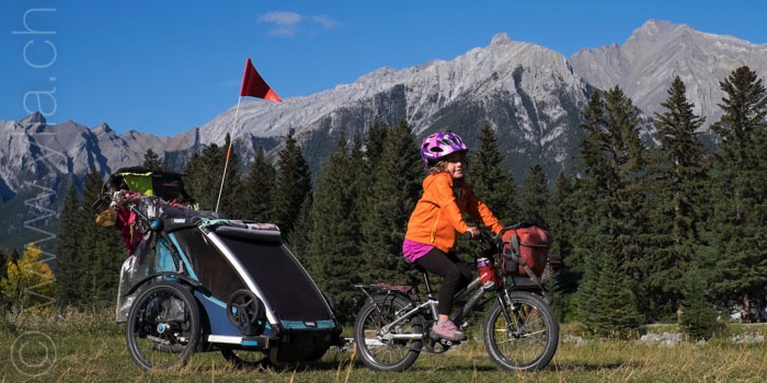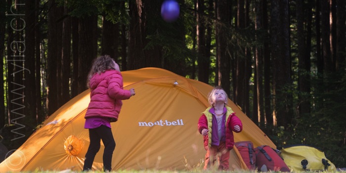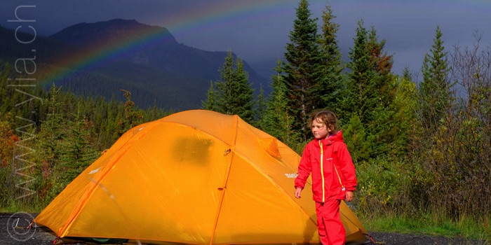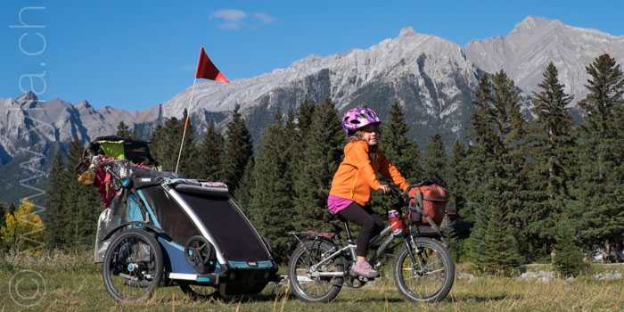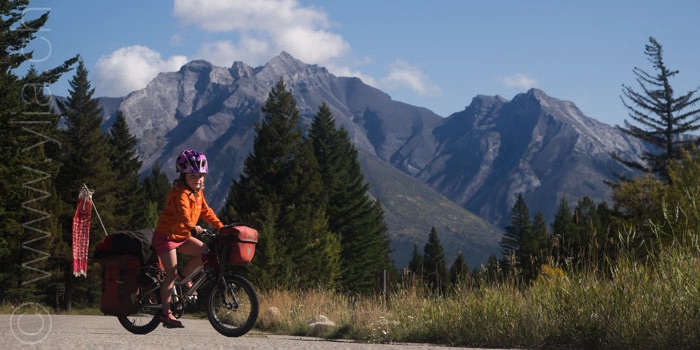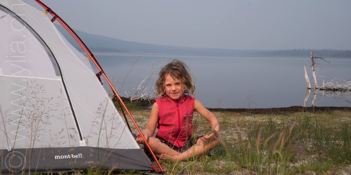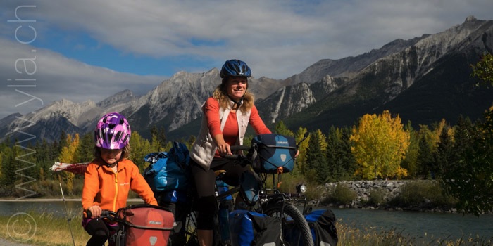 The girls are in perfect harmony with everything that surrounds them. They play in turquoise lakes or crystalline streams. They jump in puddles, wet, frozen, but light-hearted. They watch the hanging glaciers and marvel at the wildlife we encounter, like the elk. They play in the boreal forest, run around the trees and stand speechless in front of the sumptuous panoramas that unfold.