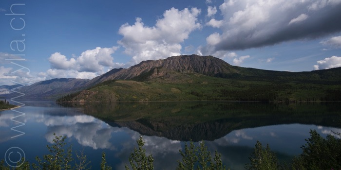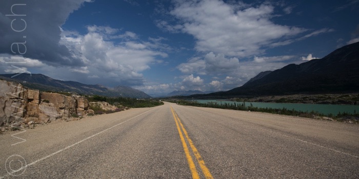 We cross the Canadian border at Beaver Creek in the Yukon and receive our first gift from Canada, more than a year's visa in this gigantic country. It will be needed to cross its infinite lands. We are in a sumptuous region, with four contiguous national parks and reserves making up the largest conservation unit. The high peaks at more than 5'000 meters are the guardians of this kingdom populated by moose, Dall sheep, wolf, coyote, bison and grizzly bears. In fact, every day we come across grizzly bears, sometimes just a few meters away. Imposing, majestic, here they are the masters.