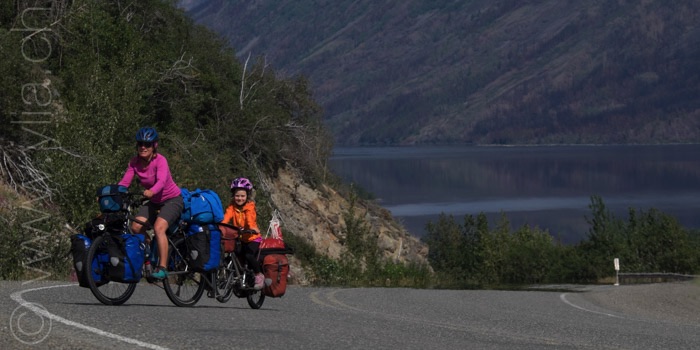 Arriving in Whitehorse is a celebration, we are exalted to have crossed this immense wilderness. We are welcomed with a warm friendship that will be one of the symbols of Canada. Then, we finally plunge into the sumptuous landscapes of the Yukon, crossing the White Pass that takes us to Southeast Alaska. There all around us, landscapes of a crystalline beauty are revealed. High mountains unfold to eternal snows and hanging glaciers. Rock formations cover the ground and make a perfect playground for girls. We are stunned and filled with great gratitude, this place is just majestic.