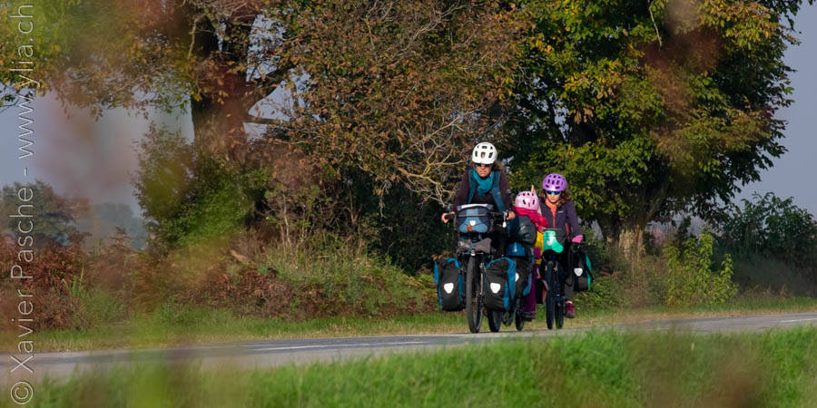 The fog covers the sleeping village. The temperature is barely 2°C. The dampness makes it even colder and our bodies are pierced by the cold. Nayla and Fibie don't want to get out of their sleeping bags. This time we are in the middle of fall. Fortunately, the days are sunny and the temperature rises in the afternoon. This season offers us the splendid colours of a nature that slowly falls asleep. The blazing hues give us an energy of wonder and joy. Fall is this magical alchemy. We are carried along by a sumptuous weather that continues to accompany us. We are infinitely grateful for this, especially since our sleeping bags and tent are soaked every morning. At lunchtime, we have to unpack everything so that the sun and wind can dry our equipment and ensure us a warm night ahead.