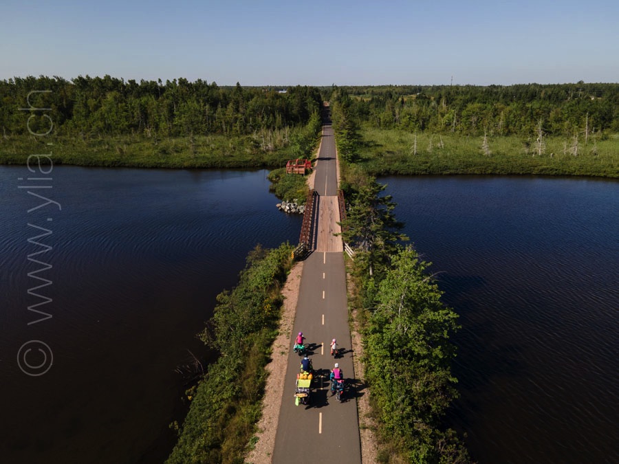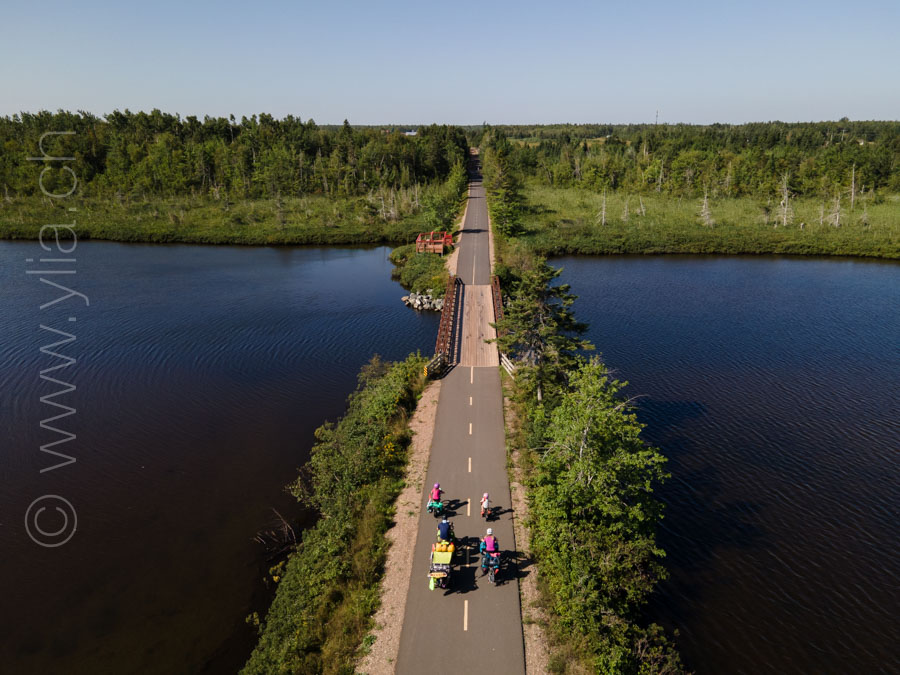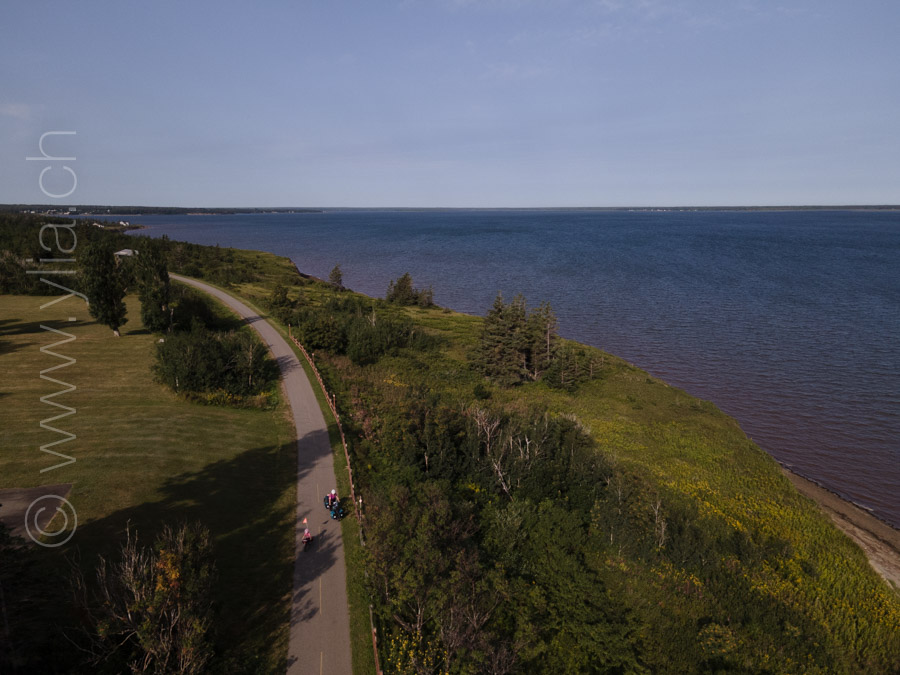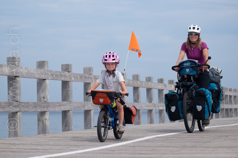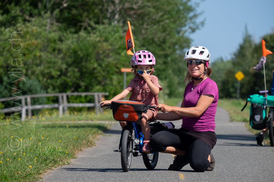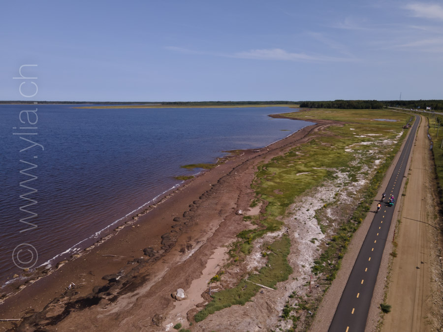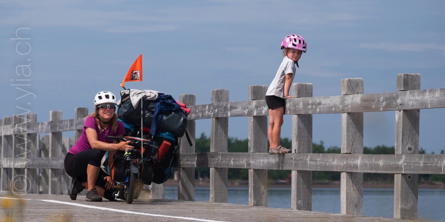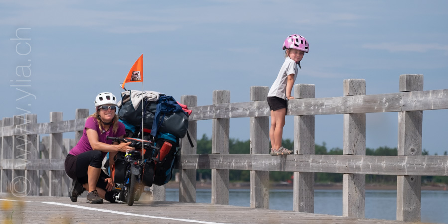 We discover the velo route of the Acadian Peninsula. This is where we celebrate our 80'000 km on the roads of the world. A symbolic figure in this nomadic life. For Nayla, it's already 43,000 km. Fibie has been a nomad for 18,000 km, mostly in the heart of the wilderness. Here she is euphoric because she can finally cycle on her own to discover this land surrounded by the sea. On one side, the warm waters of the Baie-des-Chaleurs and on the other, the Gulf of St. Lawrence and its exceptional marine life.