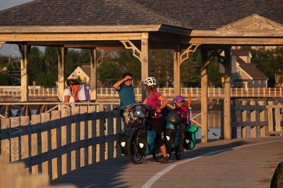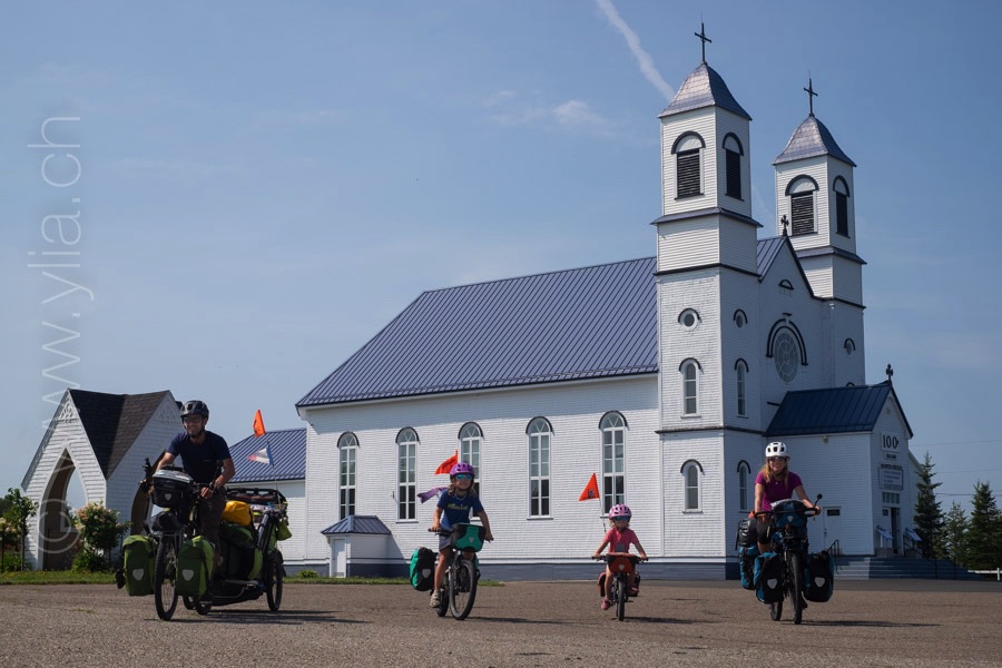 Immediately, we feel the outlines of what will tint our experience. A magnificent welcome. From the banner made by a family, it will grow day by day, to celebrate our nomadic and adventurous way of life. Above all, it will be an encounter with the Acadian people and their infinite generosity.