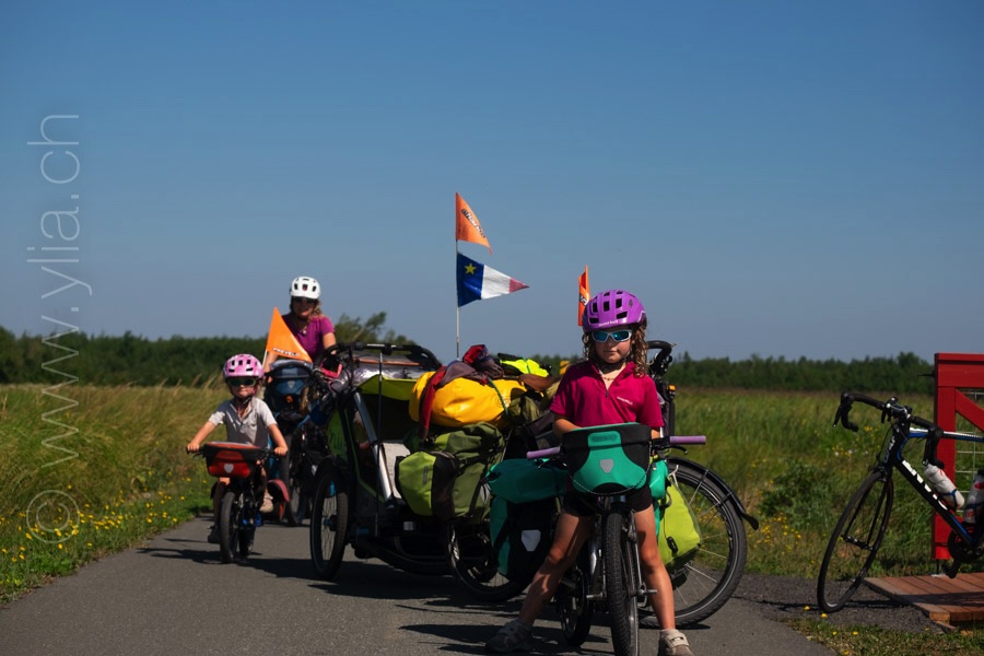 We cross the line which takes us to the province of New Brunswick. Nayla is happy to speak English again, as if it were the language of the journey. And Fibie wonders if she will be able to swim in the sea, lakes and rivers. For my part, I feel a deep sense of relief. The tension on the roads was so intense that it had almost taken the joy out of cycling, with most drivers speeding past us, often without realising it. Here, at the first crossroads, it's already different.