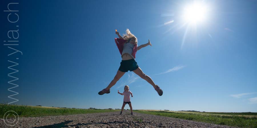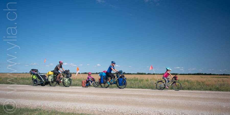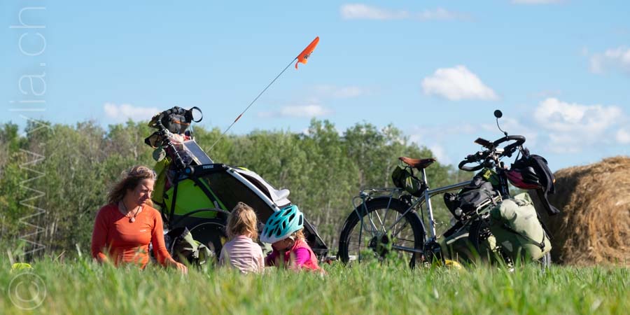 In Alberta, gigantic prairies stretch out into the horizon, like the great Mongolian steppes or the ones in Central Asia. They bewitch us with a deep sense of freedom. Darren joins us there. The girls are thrilled to have a companion on the road and his presence brings a joyful and sparkling atmosphere.