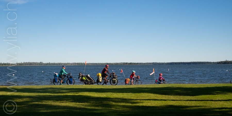 We discover some national parks, the Waskesiu and Duck Mountain National Parks, home to an extraordinary fauna: elk, moose, black bears, cougars, lynx, bobcats and even wolves. The lakes are then the sanctuary of birds, swans and wild geese. They are found there by the hundreds. Sometimes we see them flying in formation. The time of migration is approaching. For us, these lakes are also a source of vitality. The fresh water and swimming soothe the body and cheer up the girls. While the feminine energy of this element balances the masculine energy of the prairies.