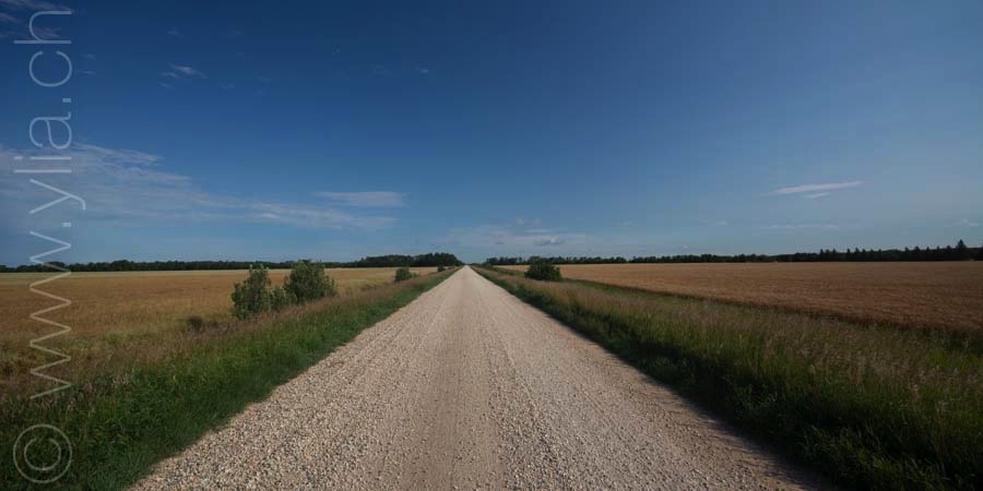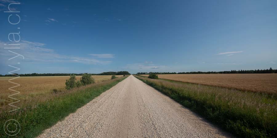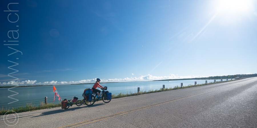 Slowly, along our eastward crossing, the trees reappeared. In Manitoba, temperatures have dropped and the morning dew is almost frozen. The leaves of some birch trees are already coloured. Sometimes a cold mist surrounds us. We are again in wilder places. There are only a few houses on the 200 kilometers to the next town. At night, the coyotes howl. We hear the packs moving not far from the tent. When we arrive at the Narrows of Lake Manitoba, the sun shines on the water that looks like a sea. Something crystalline emanates from the landscape, perhaps it is its energy. According to myths, the unique sound of the waves foaming over the limestone rocks is the presence of the Manito-bau, the Great Spirit in the native Ojibwe language.