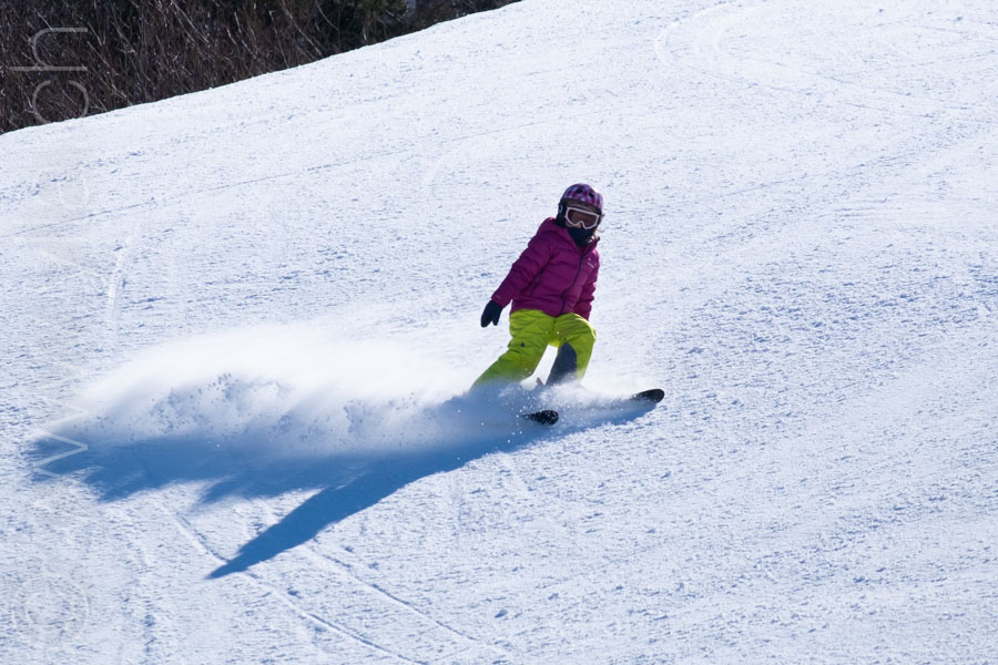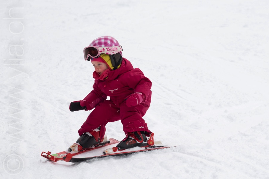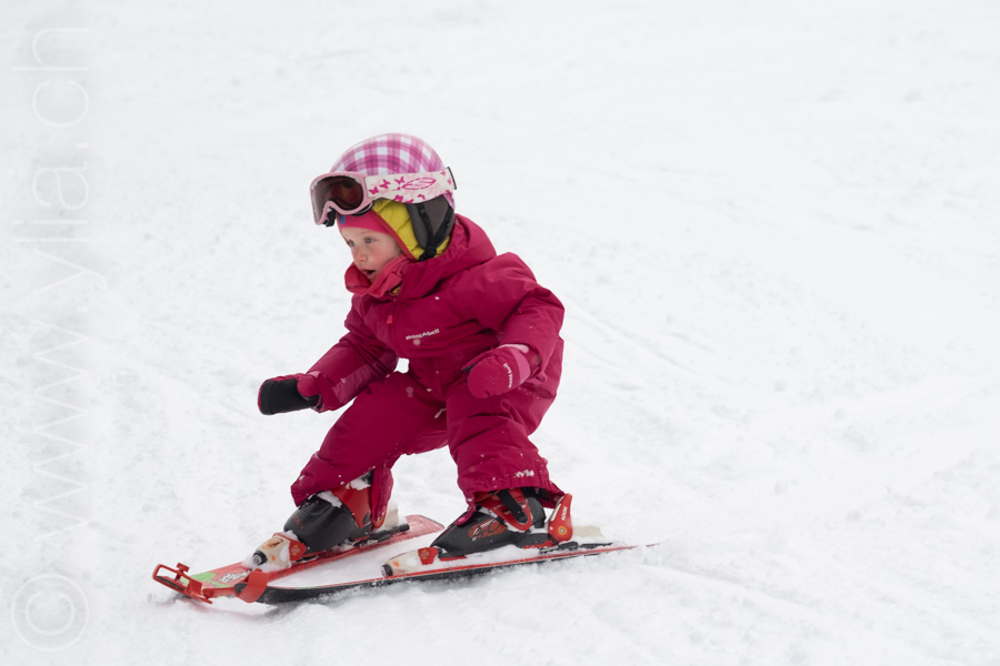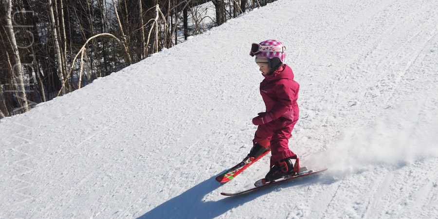 Surrounded by nature, Fibie is developing her coordination, strength and motor skills. Last summer, she rode on her own on Quebec's bike paths, in the fall she learned to swim and this winter she is skating and skiing. She learnt to stand up on her skates and to slide on the ice. In alpine skiing, she is improving tremendously, finishing the season snowploughing down the slalom of the steepest slopes in the resort, between the trees or in light powder. Always playing in English with Nayla, she speaks both languages and sometimes both at the same time. Now she has started to take her pencils not only to write her name or send mail copying sentences, but especially to draw her animal friends.