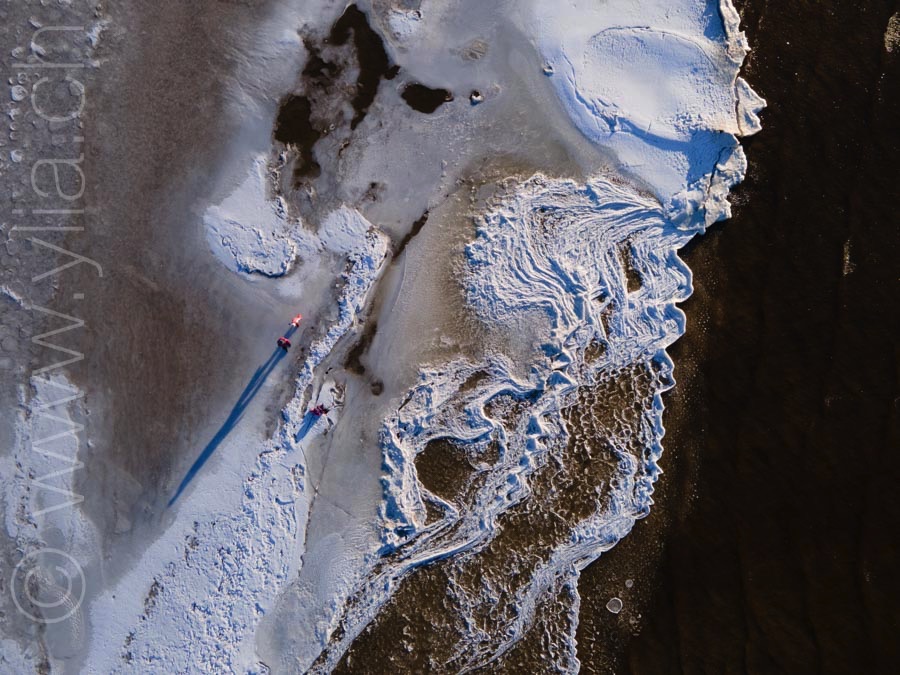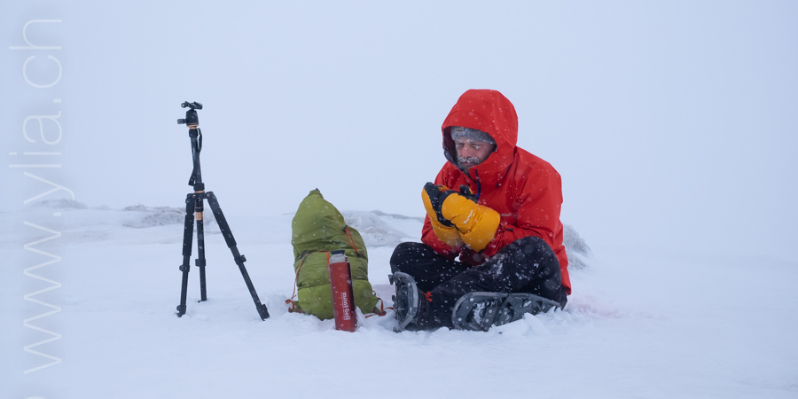 There are no natural barriers on the lake. The wind carves the snow. It can be violent, fierce. In a few minutes, it transforms this white paradise in a void with no visibility. The snow is blown into small crystals that whip our face. These powerful winds and storms also cause temperatures to drop with a wind chill approaching -35°C. In such conditions, the lake can quickly turn into a hostile place.