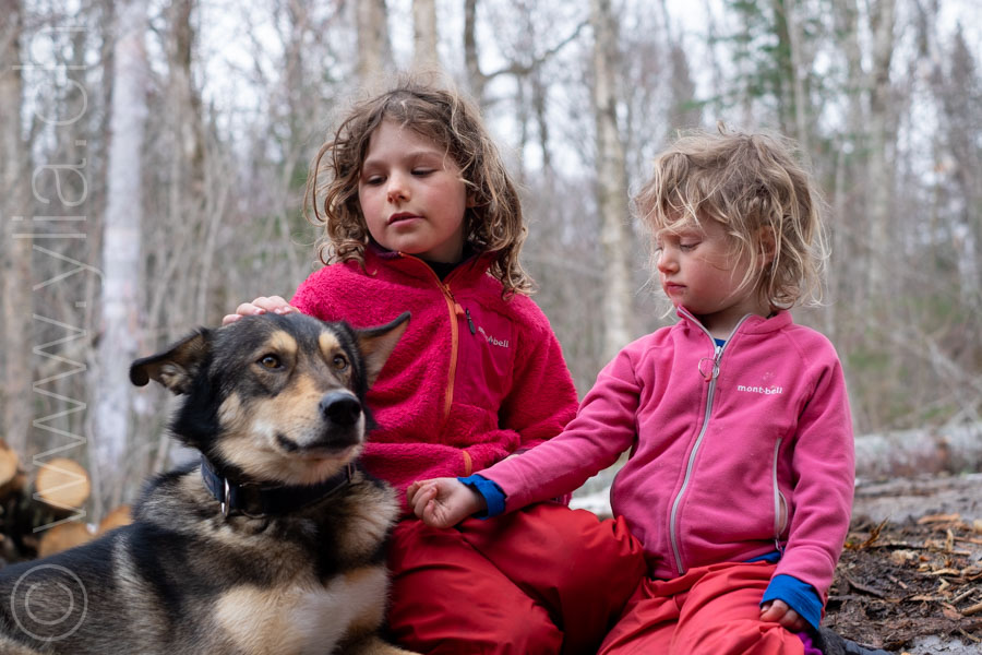 Nayla enjoyed playing hockey with a few friends. She asked Pingo, her husky friend, to pull her on skates along the 30-kilometre-long ice trail of Lake Kenogami, in the heart of incredible landscapes. Skating on the frozen lakes gives her that feeling of freedom, accentuated by the breath of the icy wind. She goes cross-country skiing or snowshoeing on the immensity of Lac Saint-Jean. On skis, she turns parallel on the slopes or off-piste, in all conditions and even starts to have fun in the powder. Nayla and Fibie have been skiing in all weathers and temperatures. Nayla continues her delight-directed learning through many projects. She has enjoyed learning about the Great Wall of China, doing calligraphy, drawing the wall, selecting information to make a presentation to her sister and Dad.