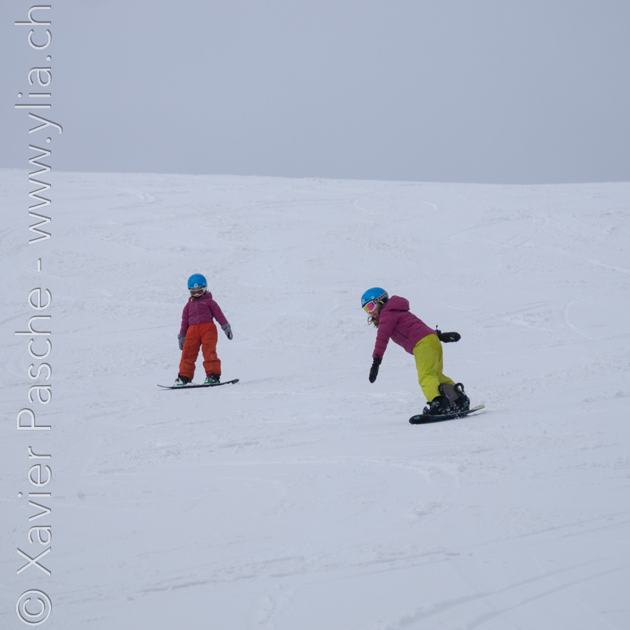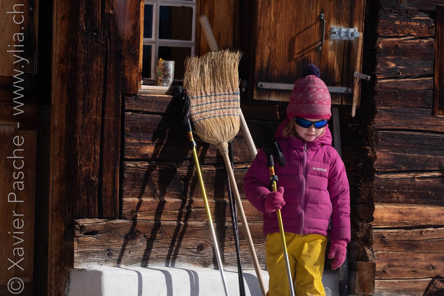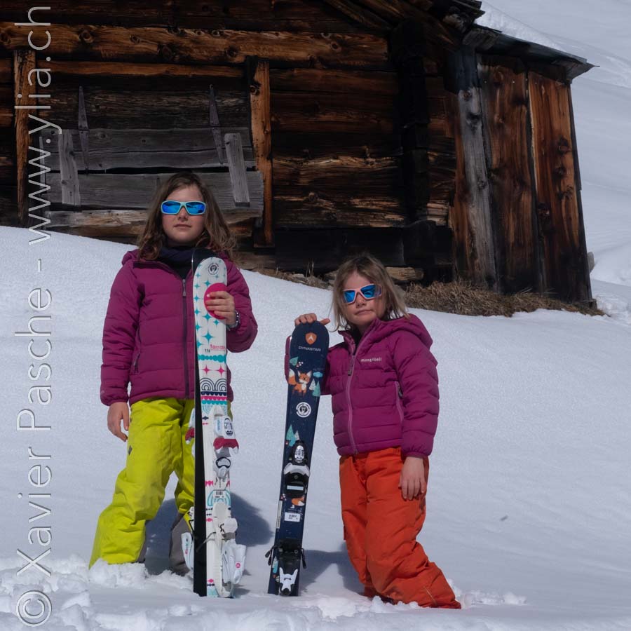 After exploring the opportunities to ski in Romania, Slovakia, Bulgaria or Georgia, we are back on the Swiss slopes. Yet winter never seems to arrive. Even when the « Empaillés » and « Peluches » from Evolène Carnaval were trying to fend off the winter demons, the sky was unfailingly blue. The girls understood the reason for the lack of snow, "the clouds have no more ideas to create new, unique snowflakes". A few weeks later, the clouds are inspired again. The long-awaited white coat has finally arrived. We are on our skis in the middle of a storm, facing brutal winds, freezing temperatures and zero visibility. Yet we celebrate the snow, both for nature's sake and for our own, the pleasure of being in this element. Then we ski for several days in a 60+ cm blanket, floating on this cold, pristine surface. Without poles, the girls ski down these slopes screaming with joy.